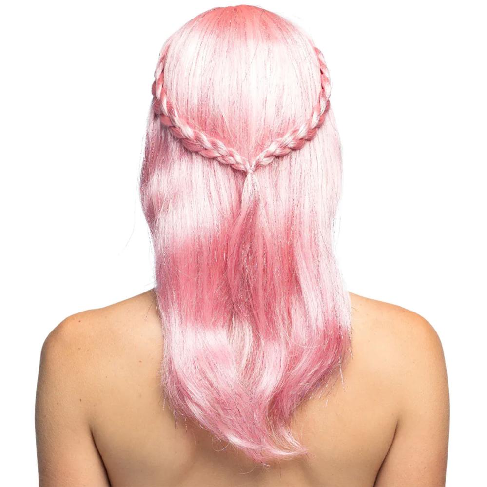 Giv dit look det lille ekstra med denne lysrosa paryk med fletninger og skimrende tråde. Den er perfekt som en cosplayparyk når du vil skille dig ud med stil og skabe en fantasifuld karakter.