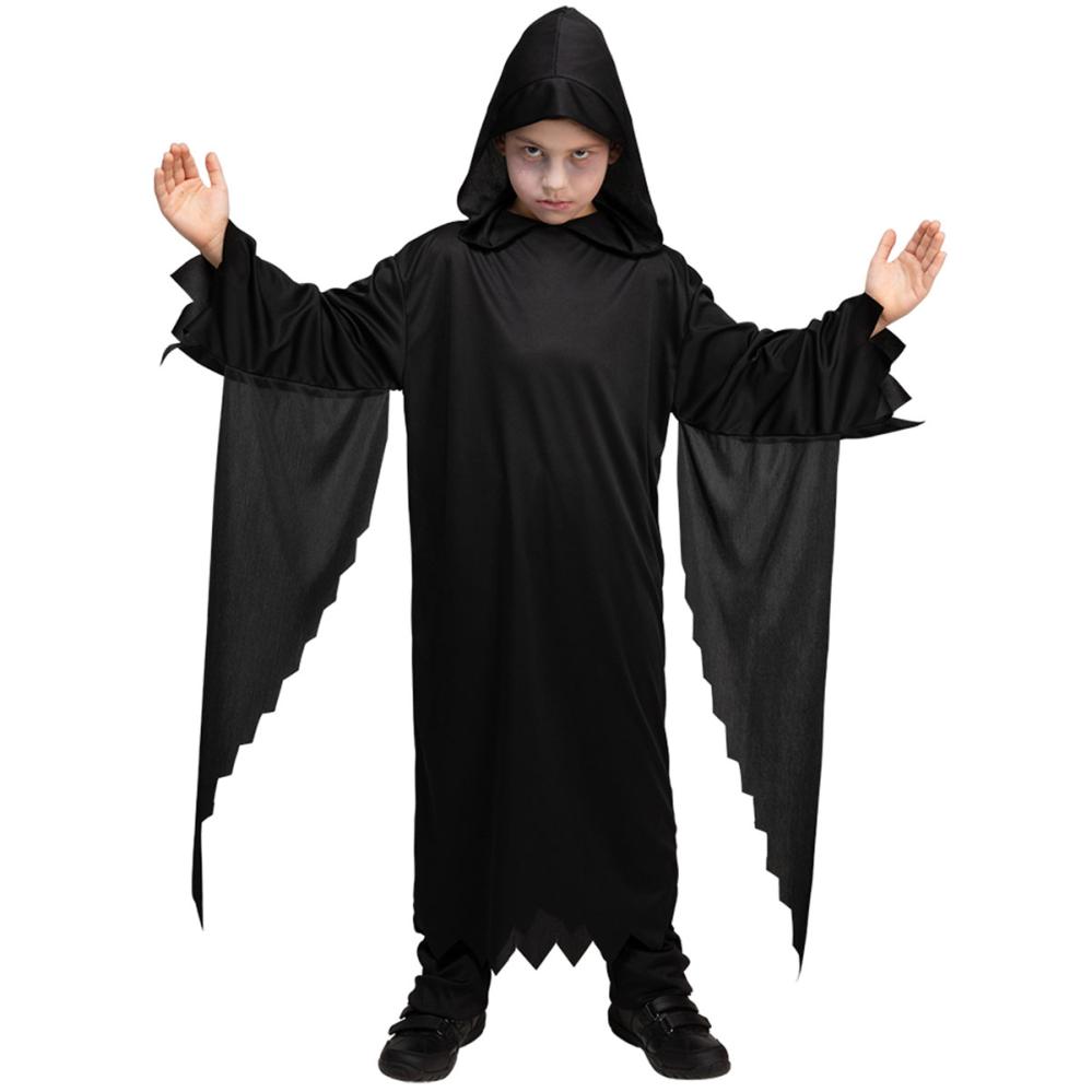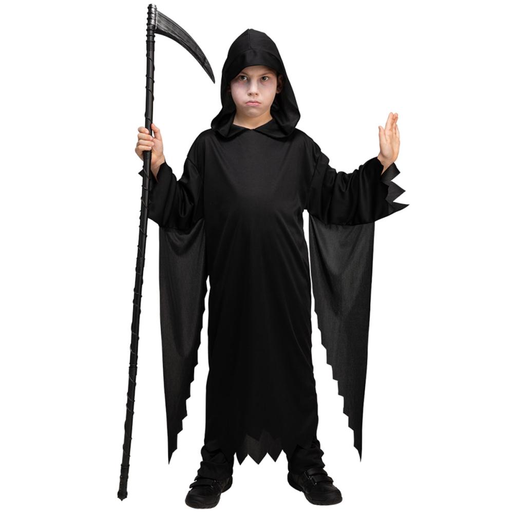 Skab uhyggelig stemning med denne manden med leen dragt udklædning til børn. Med hætte og takkede detaljer bliver den en perfekt Halloween maskeradedragt til skræmmende eventyr ved slik eller ballade og maskerader.