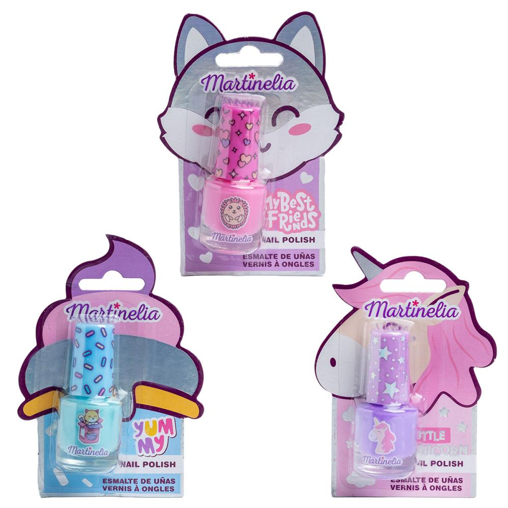 Martinelia Neglelak omfatter en neglelak til børn med forskellige motiver og farverne lyseblå, lyserød og lilla. Disse neglelakker er udviklet med børns sikkerhed for øje, og er helt sikre og giftfrie. Den vandbaserede formel gør også fjernelsen nem, da der kun kræves varmt vand og sæbe for at fjerne lakken. Neglelakken sælges usorteret og stykvis, så det bliver en overraskelse, hvilken farve du får.