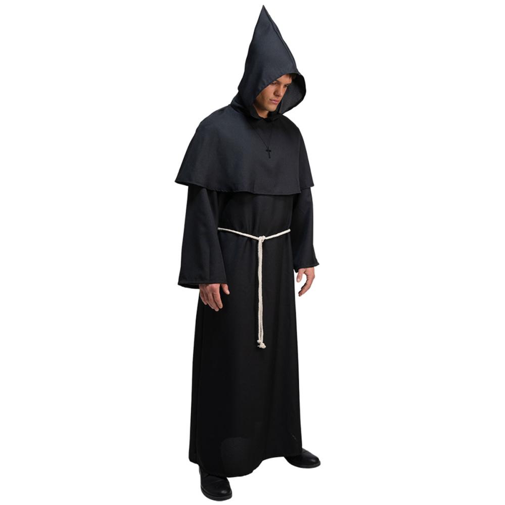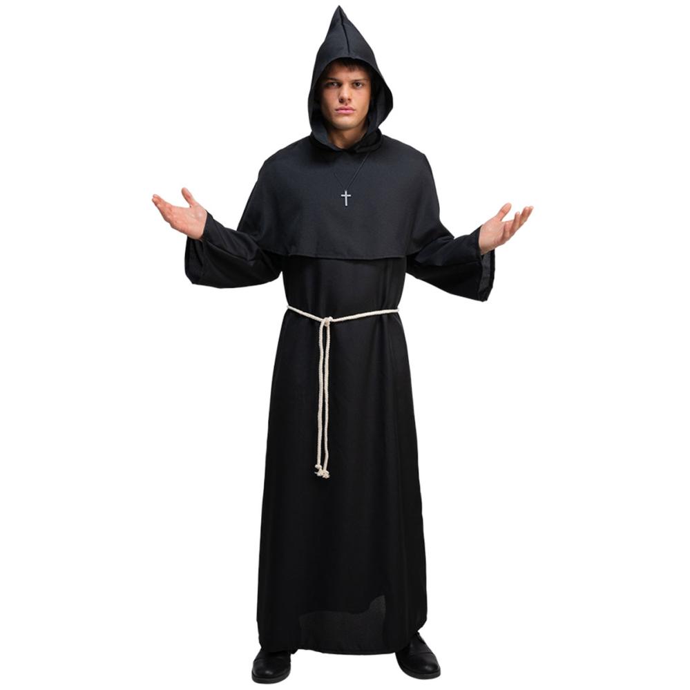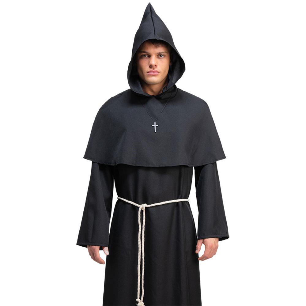 Træd ind i historien med dette autentiske middelalderlige munkekostume. Den lange sorte munkekutte med hætte, hvidt reb og korshalskæde gør din munke udklædning komplet. Perfekt som munkekostume til temafester.