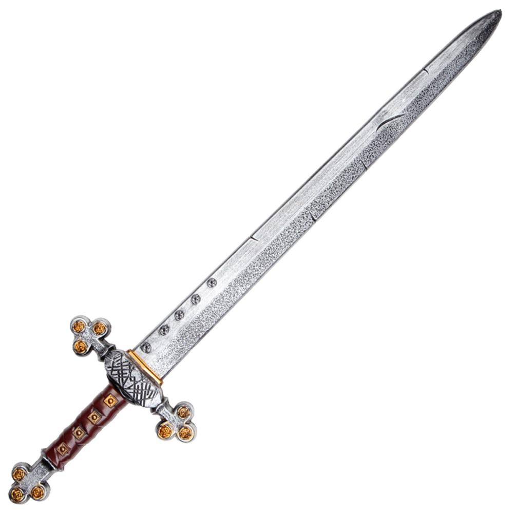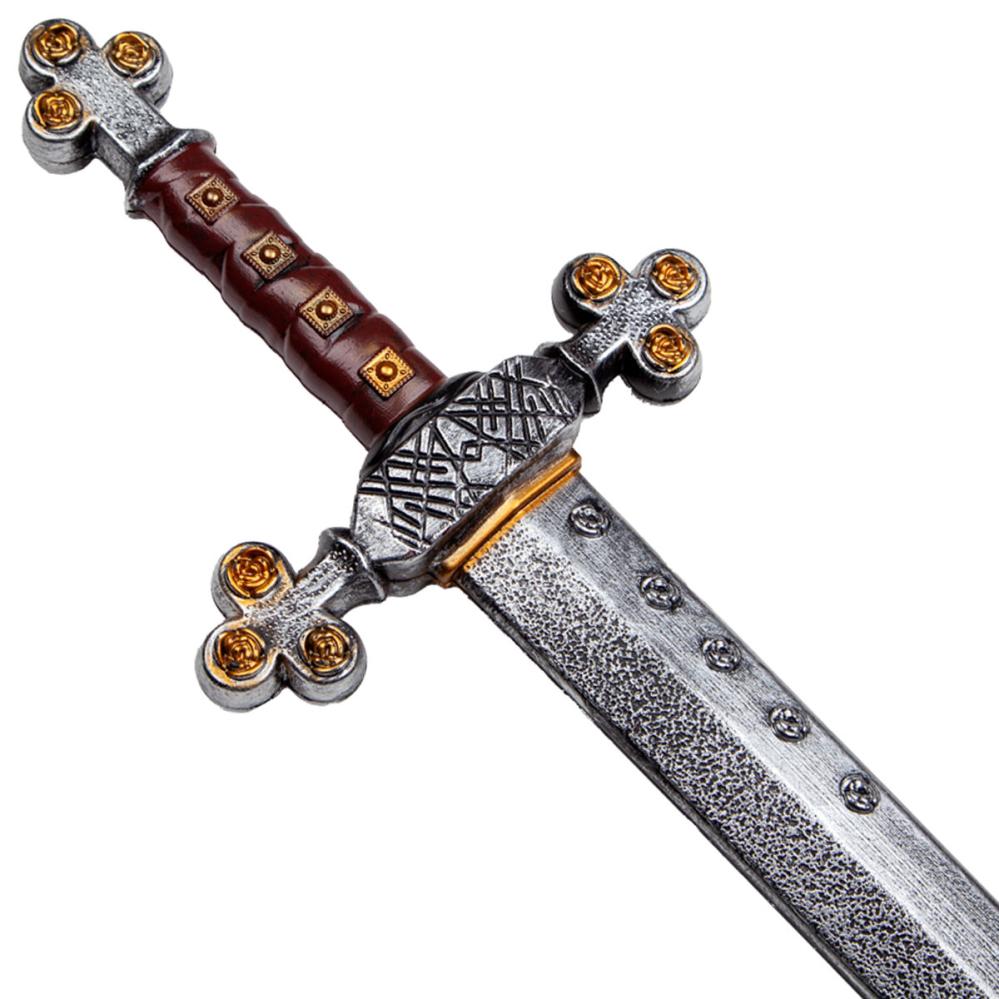 Giv din ridderudklædning en trofast følgesvend med dette middelalderlige plastsværd. Et imponerende riddersværd med metalfinish, gyldne detaljer og læderfarvet håndtag til et realistisk plastsværd i kampens hede.