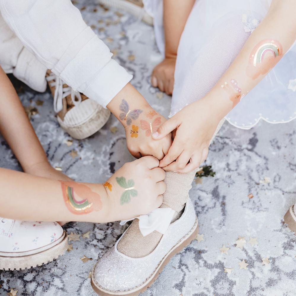 - Midlertidige tatoveringer med enhjørning, sommerfugle og en regnbue