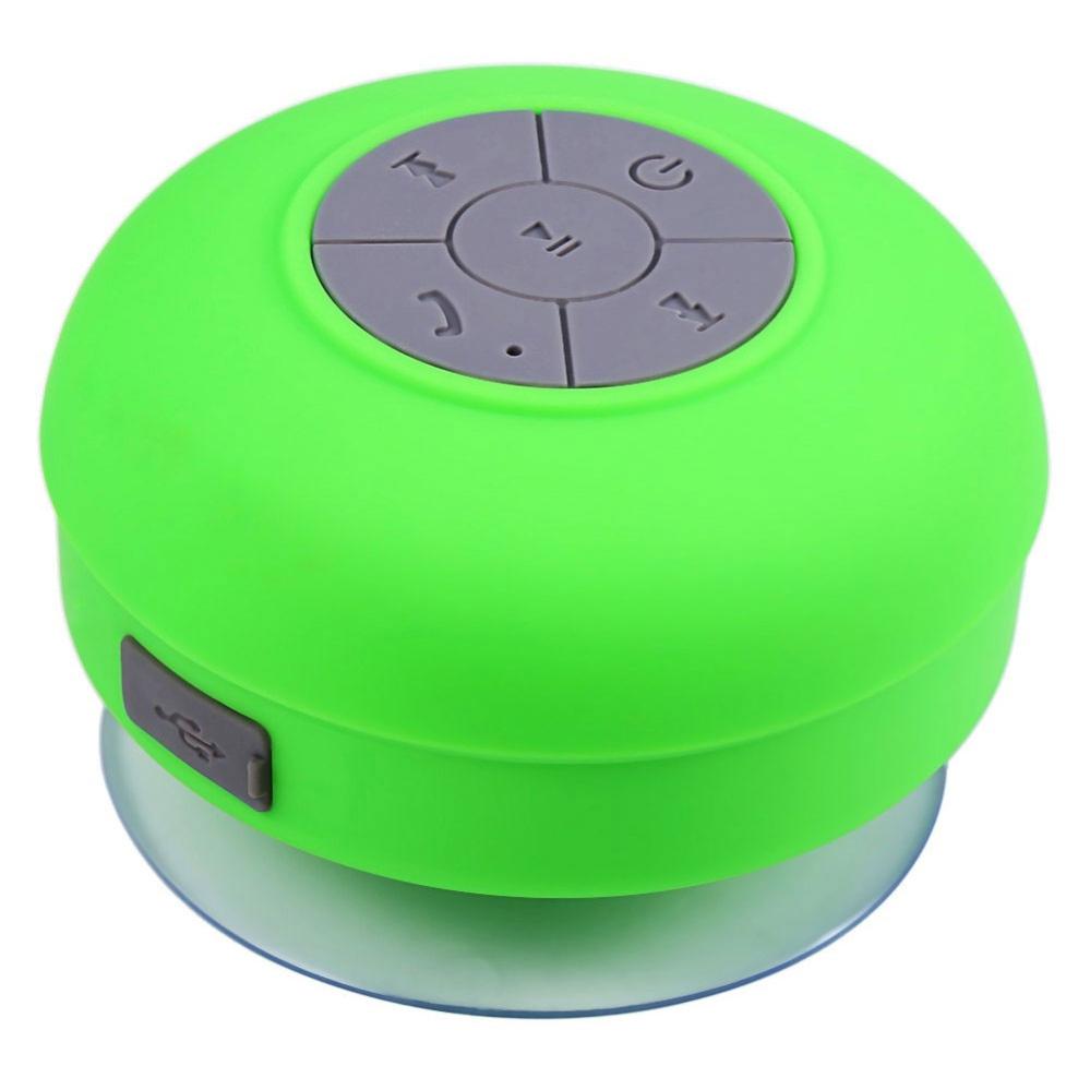 Mini Bluetooth Højttaler Grøn omfatter en lille rund Bluetooth-højttaler, som tilsluttes til din enhed via Bluetooth. Højttaleren er vandtæt, har en batteritid på ca. 2 timer og oplades med USB-kabel. Mini-højttaleren har også en integreret mikrofon og en sugekop på bagsiden. Fremstillet af plast og måler ca. 8 x 5 cm.