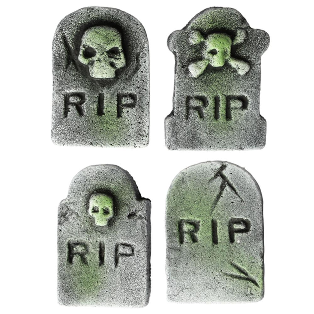 Skab en uhyggelig stemning med denne Halloween-dekoration med gravsten i et praktisk 4-pak. De er perfekte som udendørsdekoration i beskyttede miljøer eller som havedekoration, hvor du vil skabe en skrækindjagende stemning.