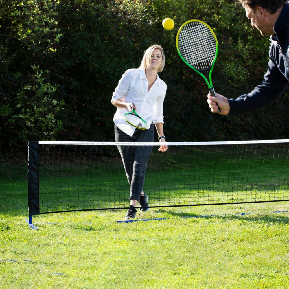 Kan du lide tennis og ønsker at spille denne sjove racketsport uden at være på en tennisbane, så er et mini tennis-sæt noget at kigge nærmere på. En sjov pakke med net, stålramme, to ketsjere, tennisbold og bæretaske, alt hvad der er nødvendigt for en sjov omgang tennis. Dette mini tennis-sæt er en sjov og aktiv udendørs- og sommersport, perfekt til have- og strandspil.