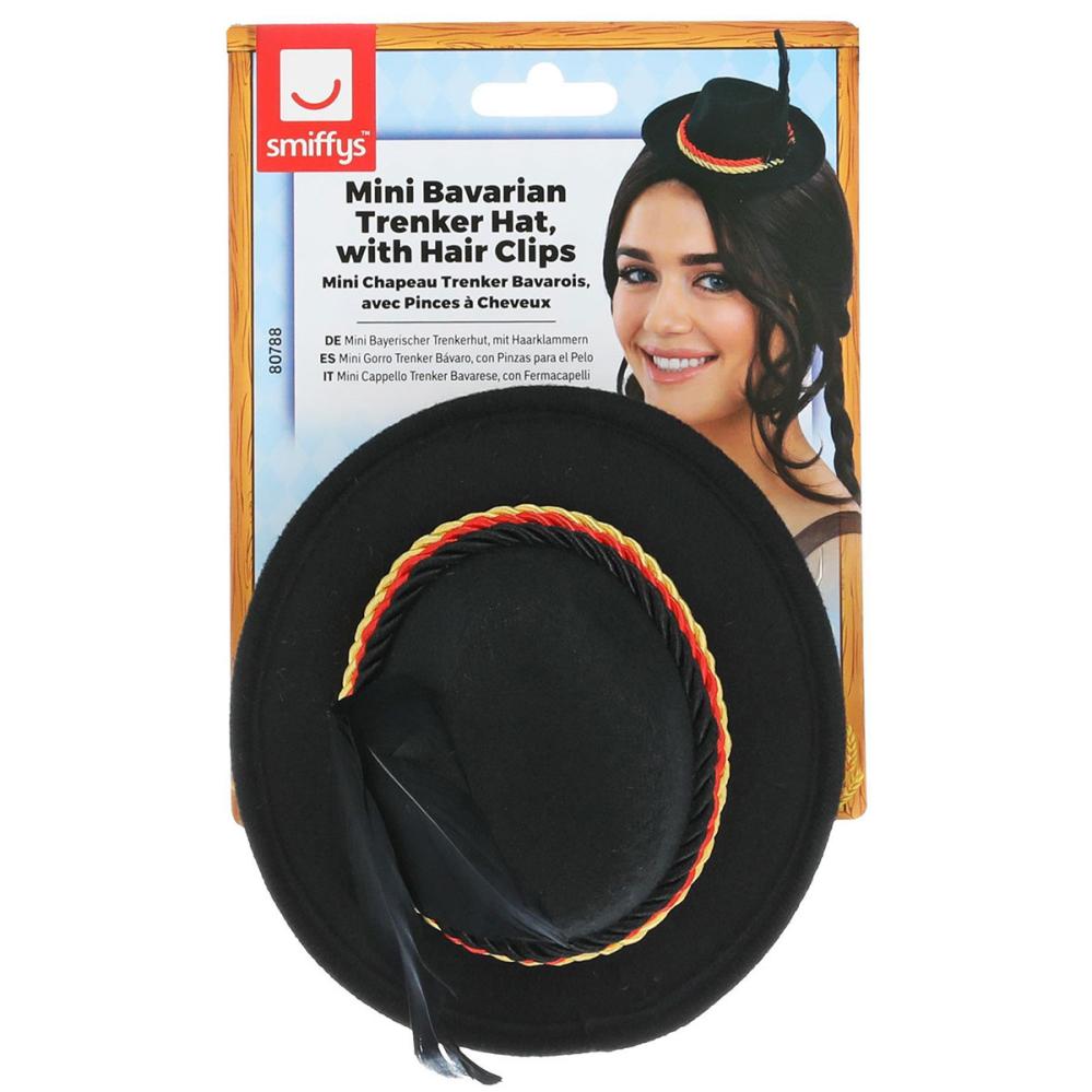 Sæt stilen med denne minityrolerhat i sort, perfekt som Oktoberfesthat eller en bayersk hat med attitude. Med hårspænder sidder den sikkert under hele festen og bliver et perfekt tilbehør til en Oktoberfestudklædning.