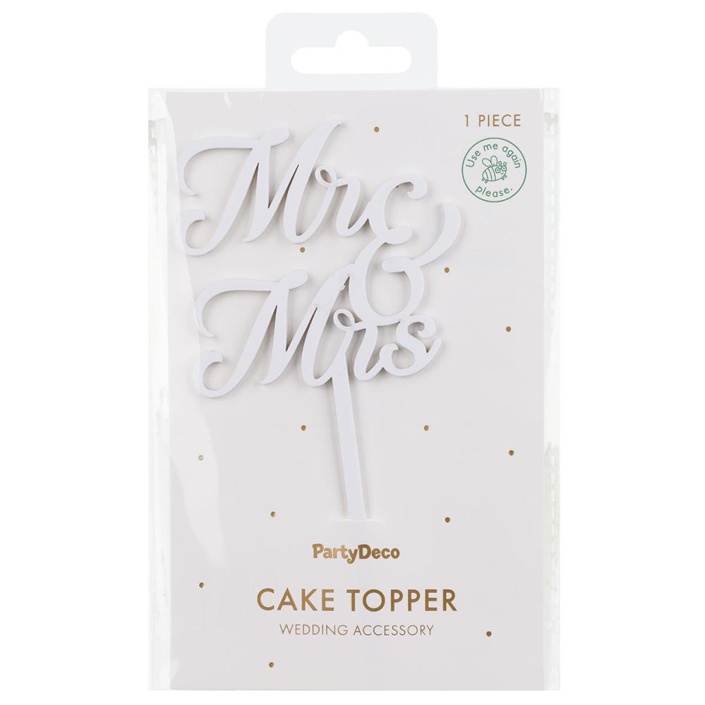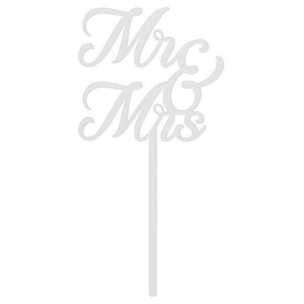 Mr & Mrs Cake Topper Hvid omfatter en hvid kagedekoration, som danner teksten 'Mr & Mrs'. OBS: Dekorationen er forsynet med en beskyttelsesfilm, som fjernes før brug.