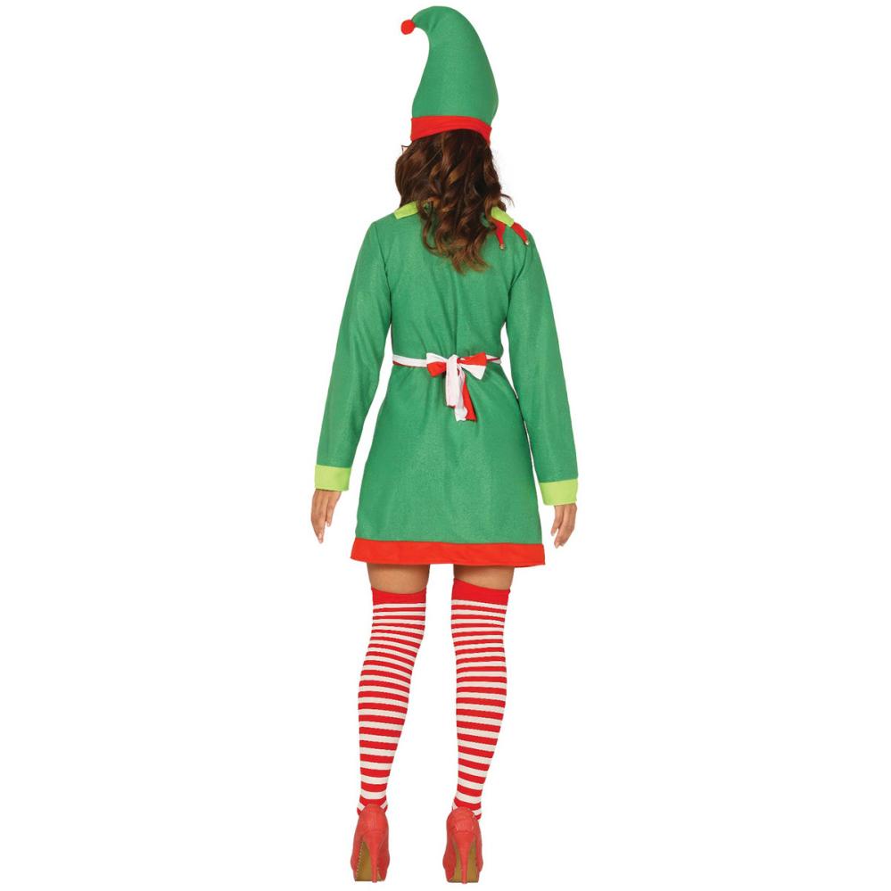 Nisse Kjole Julekostume består af en grøn og rød kjole med bjælder omkring kraven samt tre røde kugler på forsiden. Der medfølger også en nissehue i matchende farver og et bælte i rød og hvidstribet polkagrisfarve.