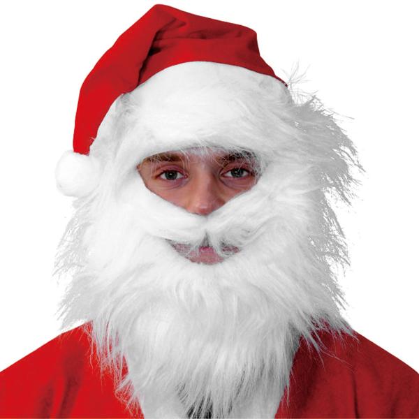 Nissehue med Skæg Hvid/Rød omfatter en nissehue i rød og hvid med fastsyet nisseskæg i hvid.