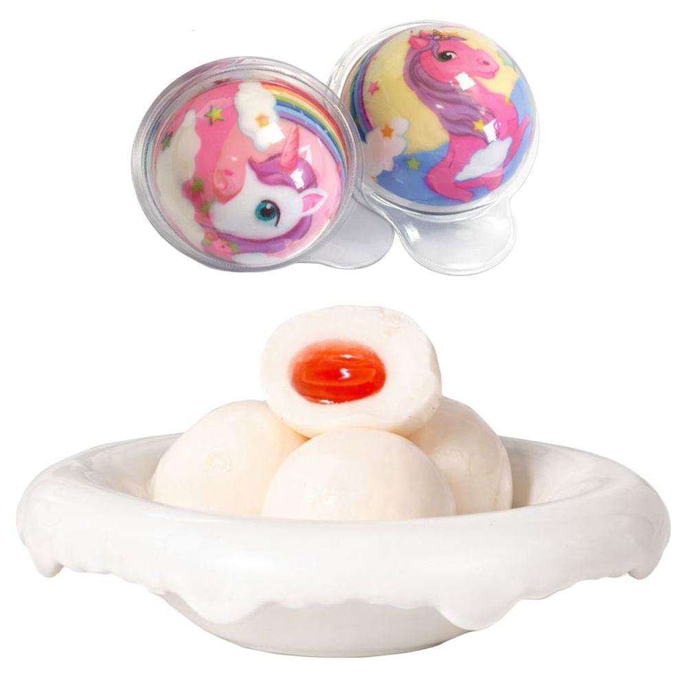 Øjeball Slik Enhjørning 10g er et øjeslik af skumgelé på 10 gram, som findes i forskellige enhjørningsmotiver.