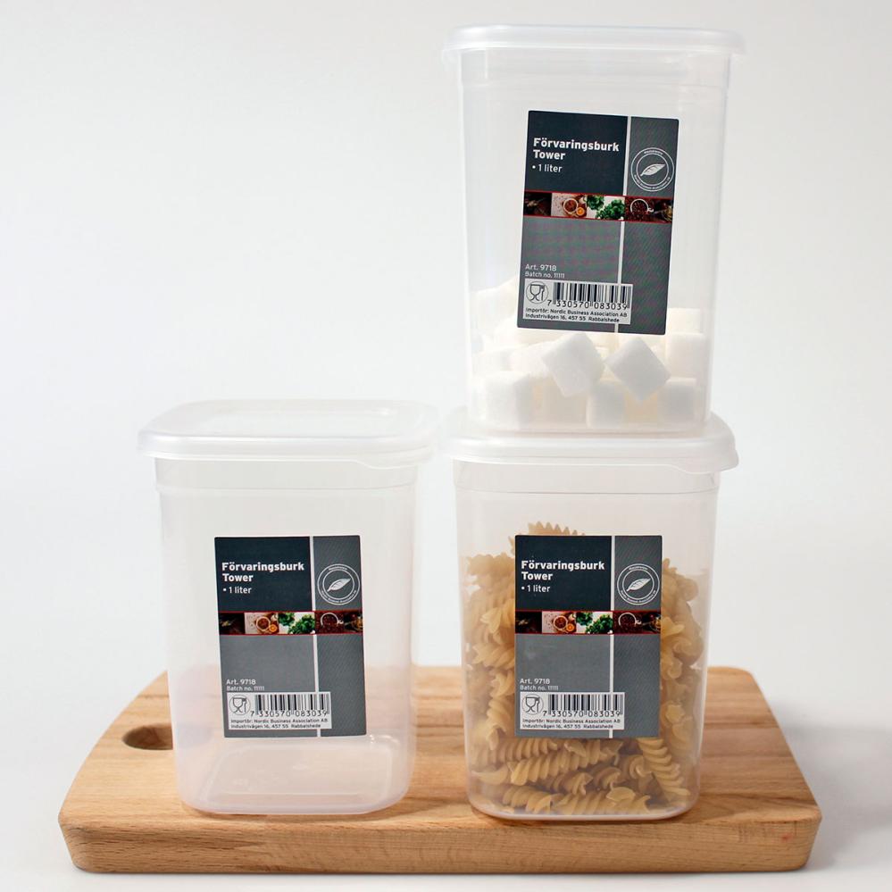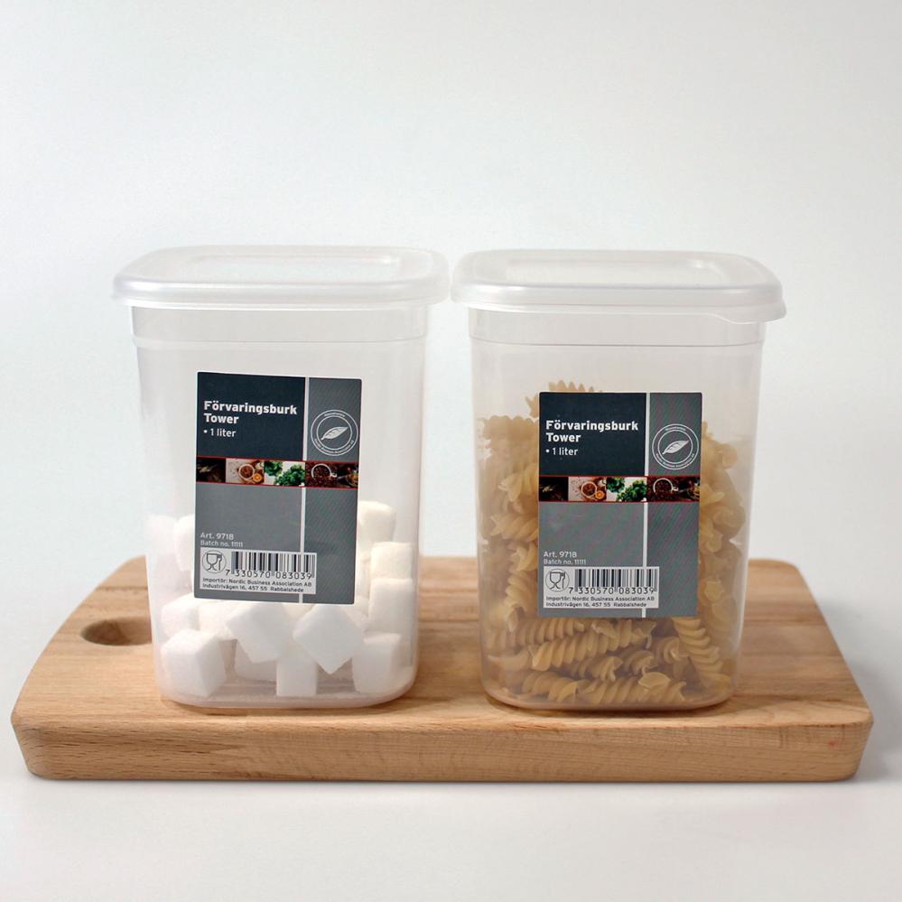 I køkkenet bliver opbevaringen enkel, når en plastbøtte på 1 liter bruges til tørvarer og andre småting. Med låg holder plastbøtten indholdet sikkert på plads. Som opbevaringsbeholder passer den godt til småting i køkkenet. Med låg fungerer den desuden som en plastbeholder til småkager og andre bagværk.
