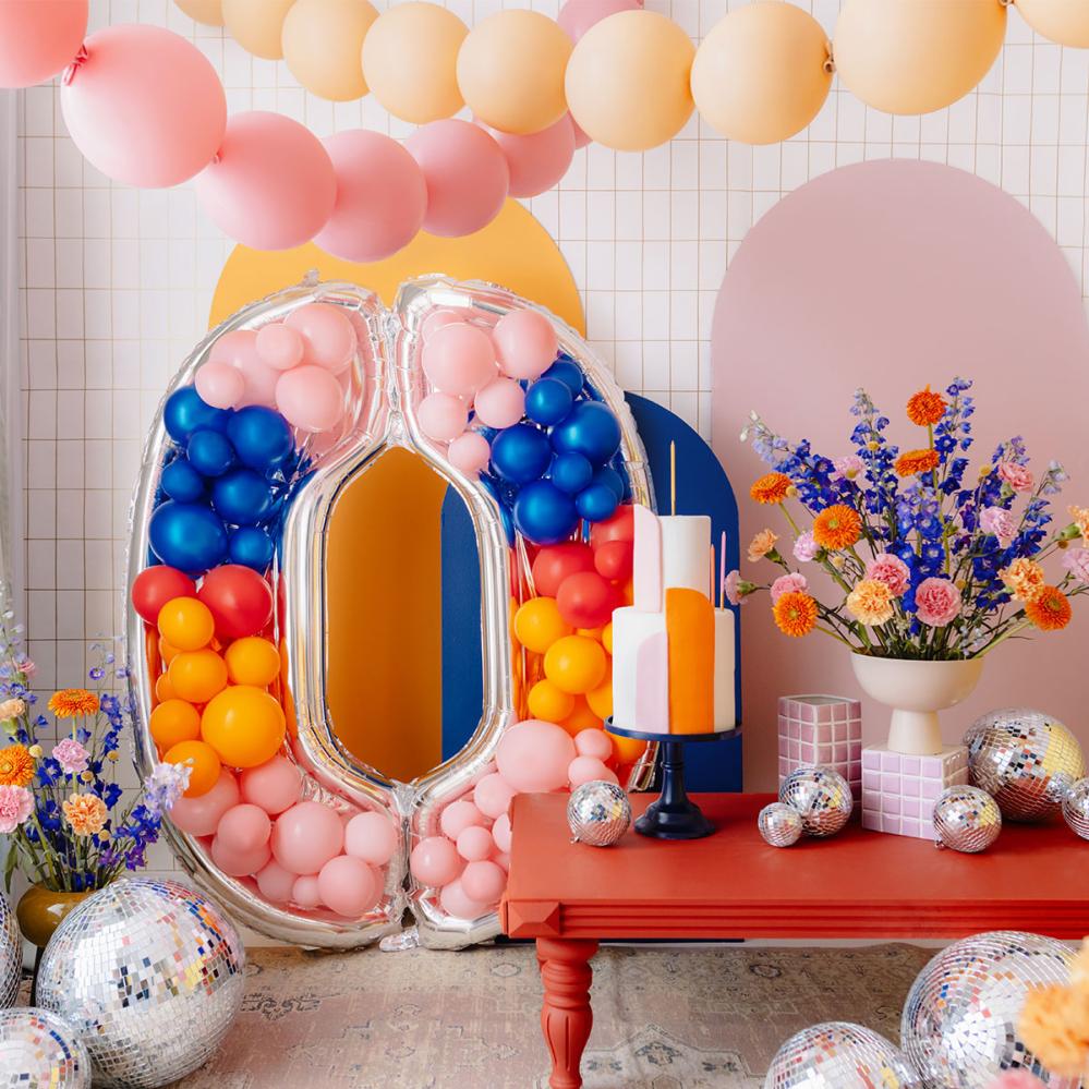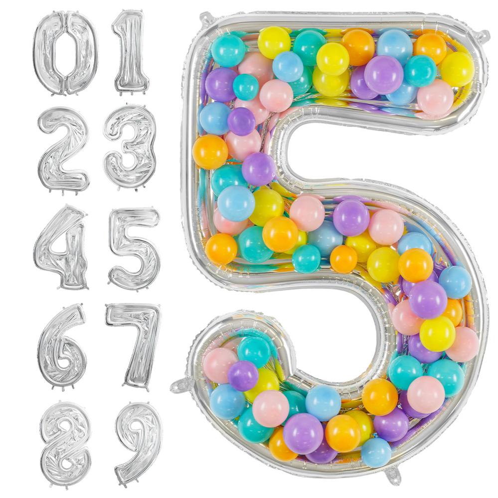 Fejr stort med en oppustelig ballonramme i form af en sølvfarvet talballon. Med det medfølgende sugerør fylder du den nemt med luft. Sættet indeholder 120 limprikker, som gør det let at skabe en imponerende ramme til balloner ved alle lejligheder.