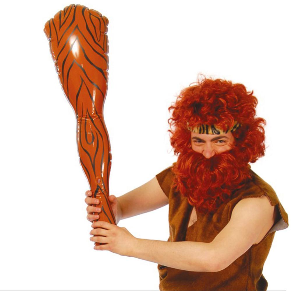 Kompletter din udklædning med en autentisk oppustelig hulemandskølle som har sorte detaljer og en brun overflade, perfekt til at skabe den rette forhistoriske stemning til halloween eller andre temafester.