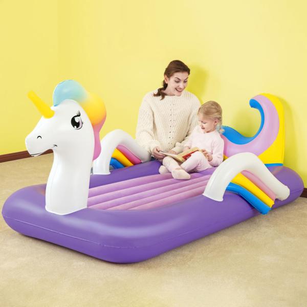 Har du et barn, som gerne vil drømme sig væk til eventyrenes land, så er denne oppustelige luftmadras i form af en enhjørning perfekt. En blød og behagelig oppustelig enhjørning-madras, der gør sovetiden ekstra magisk, og som er en garanteret succes for alle enhjørningefans og børn. Med Bestway luftmadras får dit barn en ekstra speciel soveplads med ægte enhjørningefølelse.