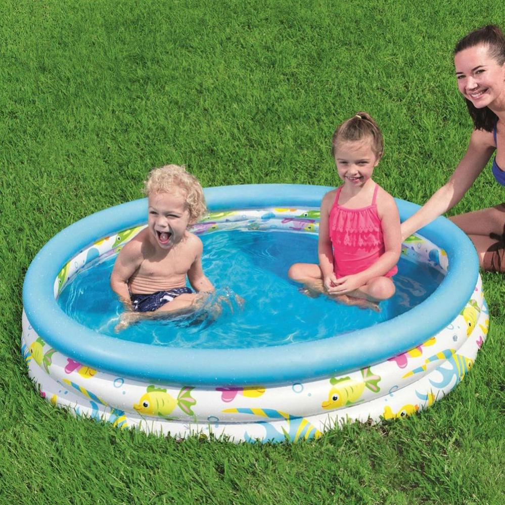Har børnene ønsket sig deres helt egen pool at plaske og bade i om sommeren, så er denne oppustelige børnepool det klare valg for dig! Med en oppustelig pool som denne kan du nemlig nemt lade børnene bade og køle sig ned på en både sjov og sikker måde. Pust den op, sæt den på græsplænen eller terrassen og fyld den med vand, så er den klar til brug. Suppler gerne med nogle sjove badelegetøj for ekstra sjov vandlege.