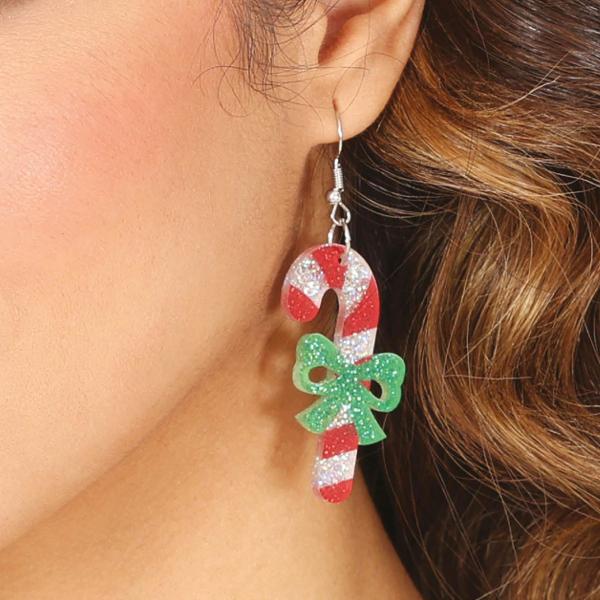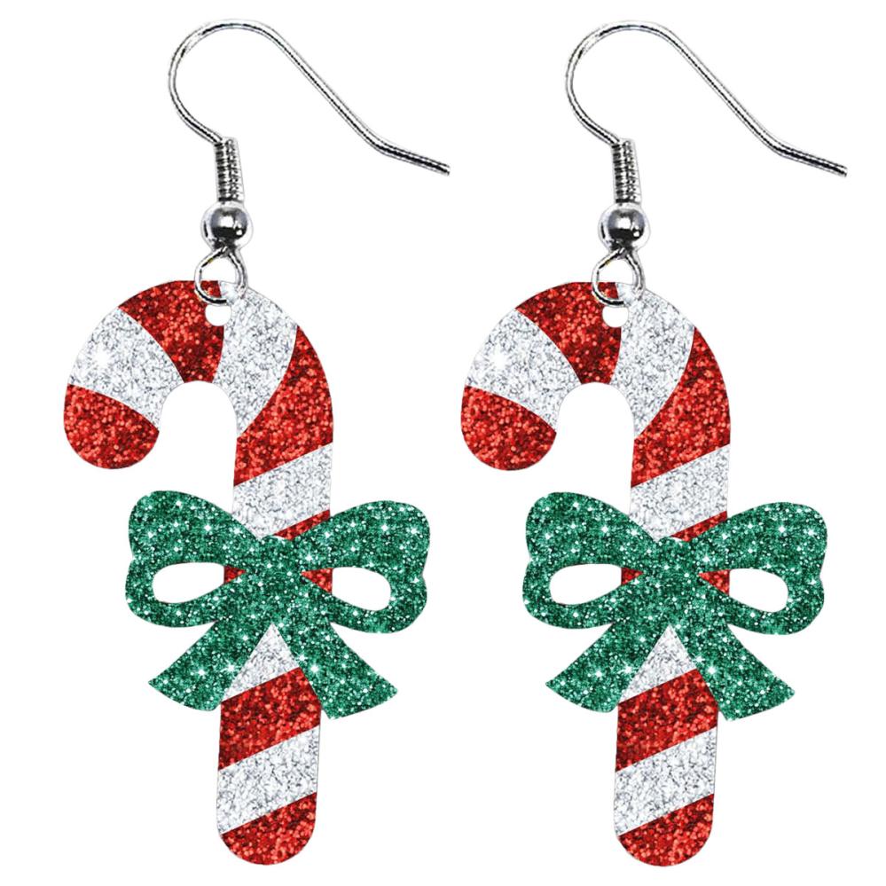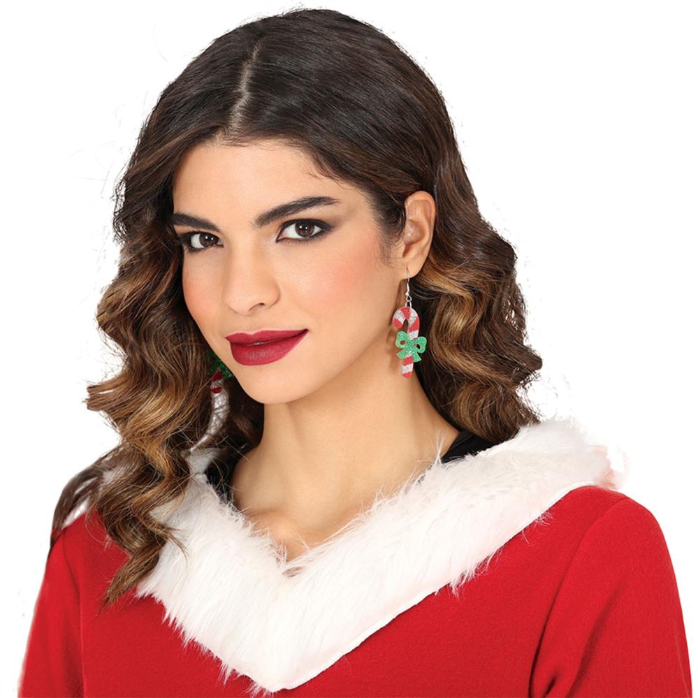 Sæt stilen med juleøreringe formet som glitrende polkagrise, prydet med grønne rosetter for ekstra charme. Disse polkagrise er perfekte til dig, der elsker øreringe med julemotiv og festlige juleaccessories.