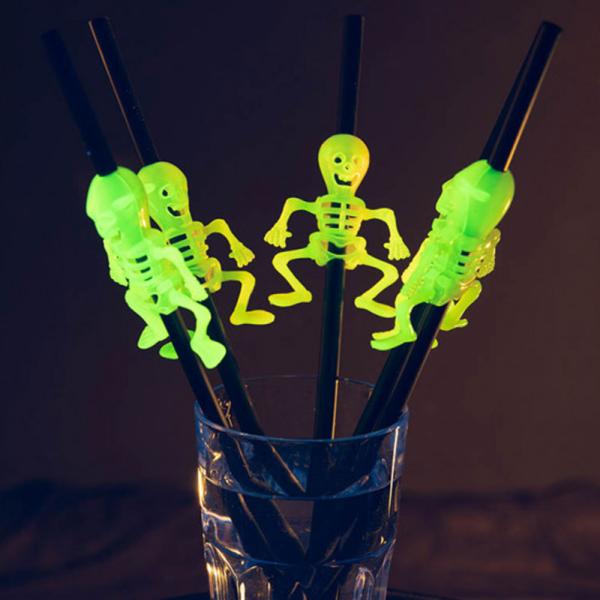 Papir Sugerør med Selvlysende Skelet 5-pak