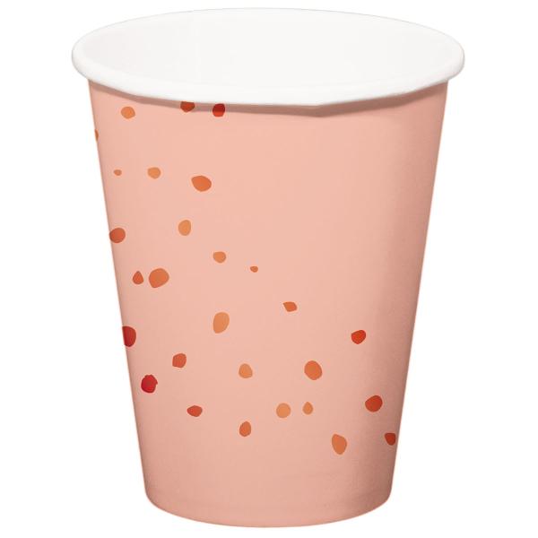 Papkrus med Prikker Lysrosa 8-pak indeholder otte lyserøde engangskrus med rosa prikker.