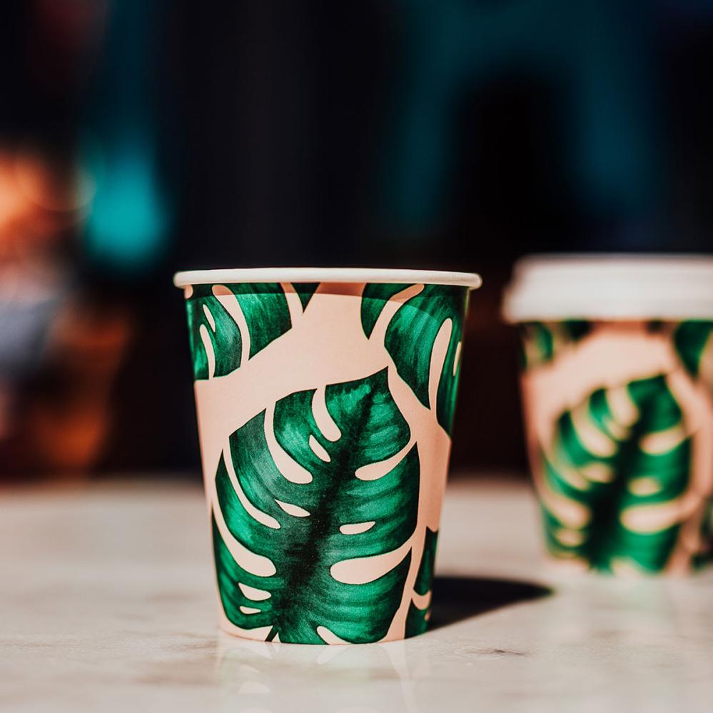 Med engangskrus bliver enhver junglefest en ekstra mindeværdig oplevelse, hvor det tropiske tema forstærkes af motivet med den grønne monstera, der pryder krusene. Disse papkrus passer perfekt til en fest med jungletema.