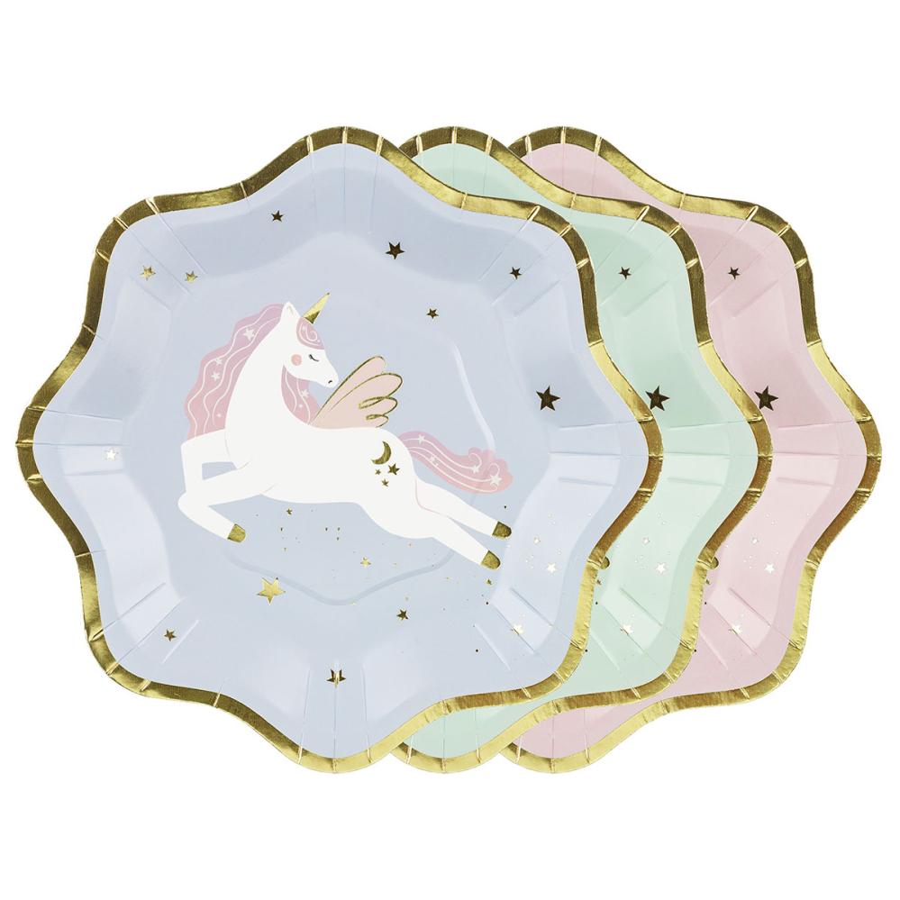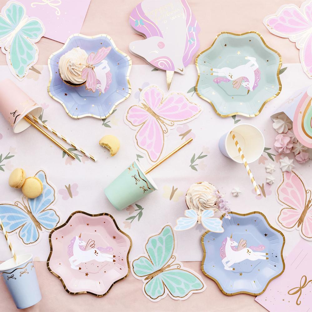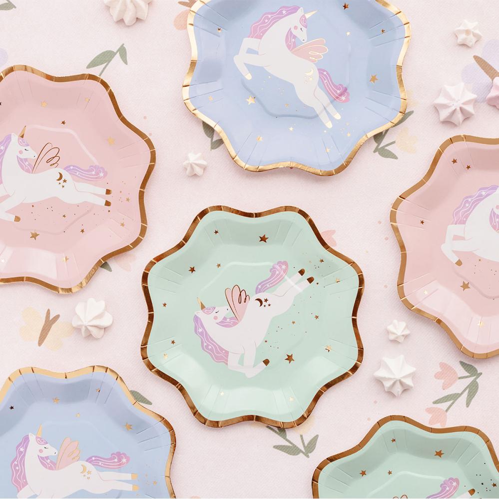 En drøm bliver til virkelighed, når papirtallerkener med enhjørninger gør entré ved bordet. Eventyr fylder rummet under en enhjørningsfest. Til en børnefest, hvor enhjørningen lokker med magi, passer en fest med enhjørningetema perfekt. Fantasien vækkes til live med papirtallerkener med motiv af enhjørning.
