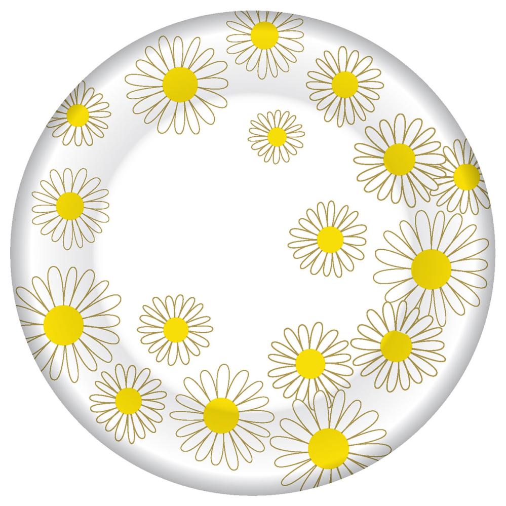 Skab en farvestrålende midsommerborddækning med paptallerkener denne sommer. I ottepakken findes elfenbenshvide tallerkener på 23 cm i diameter med smukke margueritter rundt om kanten som perfekte midsommertallerkener til sommerens havefest.