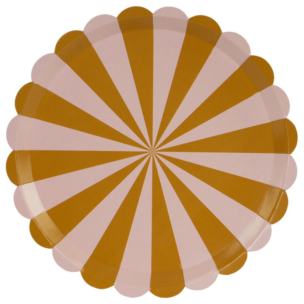 Paptallerkener Stribede Brun/Lyserød 6-pak indeholder seks paptallerkener med stribet mønster i brun og lyserød.
