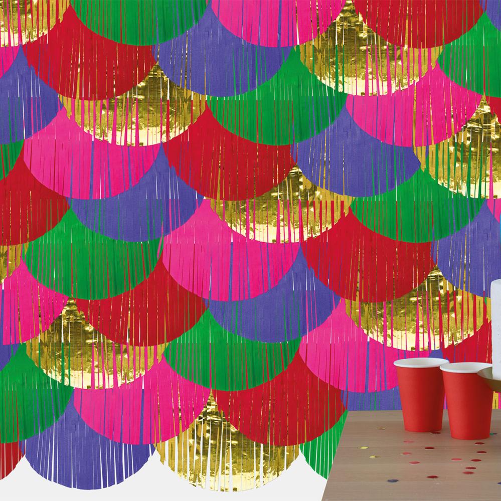 Skab en farvestrålende baggrundsdekoration til festen med disse flerfarvede frynse-strimler. Perfekt som backdrop-dekoration eller dørforhæng. De fastgøres nemt og giver din festdekoration et legende og stemningsfuldt touch.