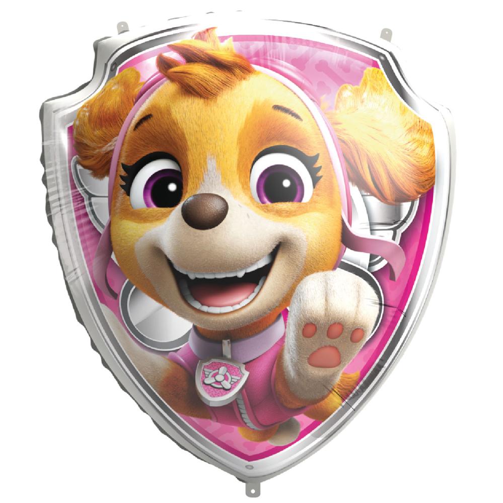 Paw Patrol Folieballon Skye 75 cm omfatter en folieballon med motiv af karakteren Skye fra TV-serien Paw Patrol. Der medfølger både et sugerør til nem manuel oppustning og en snor til brug ved heliumfyldning.