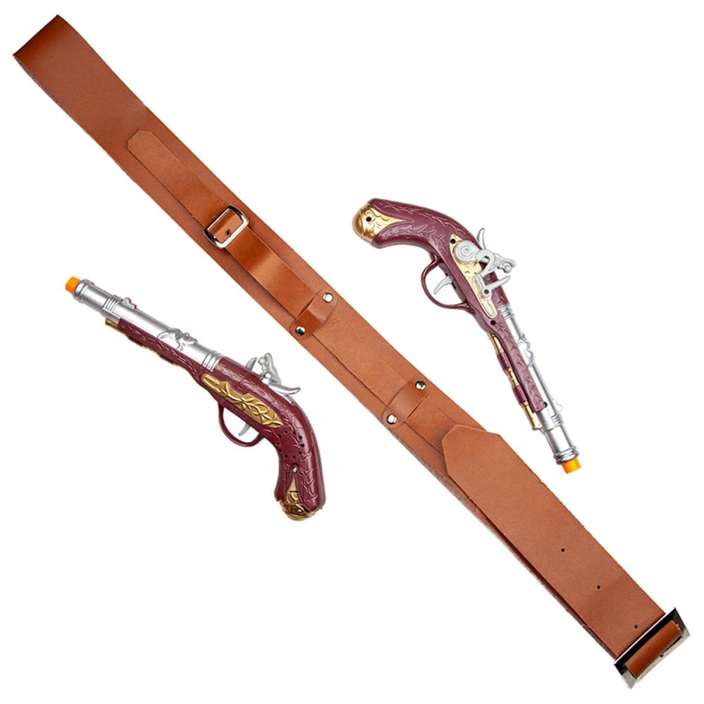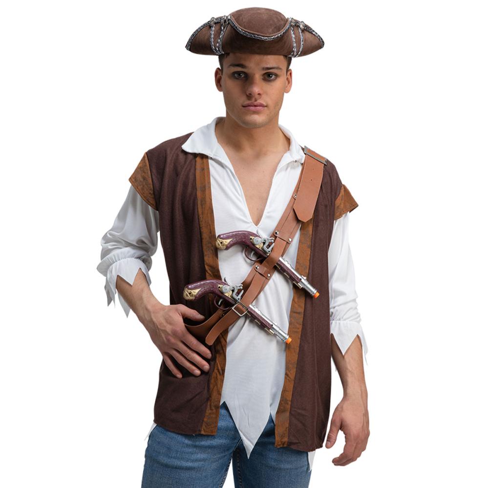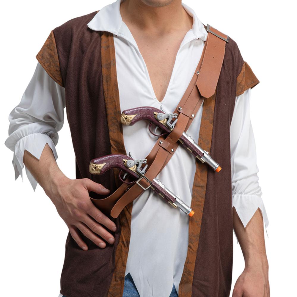 Kompletter din pirattema fest med dette skulderhylster og to detaljerede piratpistoler i plast. Et perfekt pirat tilbehør for dig der vil skille dig ud til næste udklædningsfest. Pistolerne har udseendet af en klassisk piratpistol for et autentisk look.