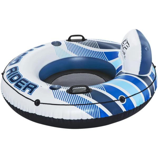 Rapid Rider Badering omfatter en 122 cm stor oppustelig badering af vinyl. Baderingen har en behagelig rygstøtte, to kopholder og netbund. Baderingen passer til voksne og har en maksimal vægtkapacitet på 90 kg.