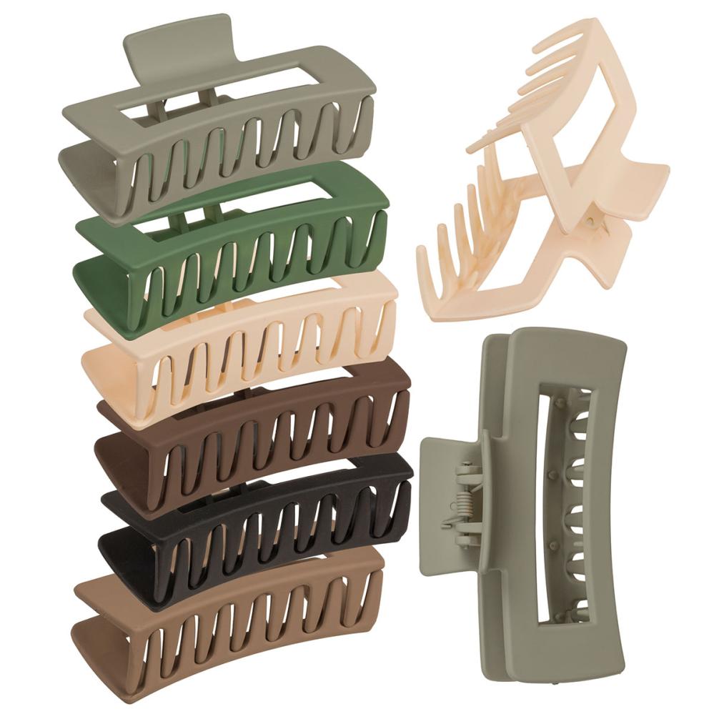 Rektangulær Hårklemme 10 cm består af en rektangelformet hårklemme med mat finish. Hårklemmen fås i seks forskellige farver.