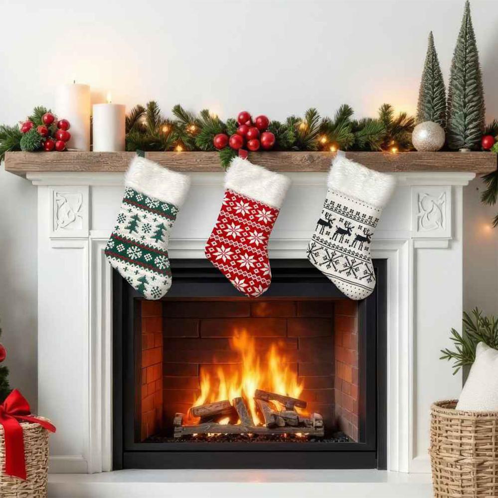 Denna juledekoration giver en rolig stemning ved den åbne pejs og passer fint sammen med vintergrønt, lyskæder og enkle tekstiler. Julestrømpen rummer små pakker, slik og kort, kan hænges op der den passer og er enkel at matche med øvrige farver.