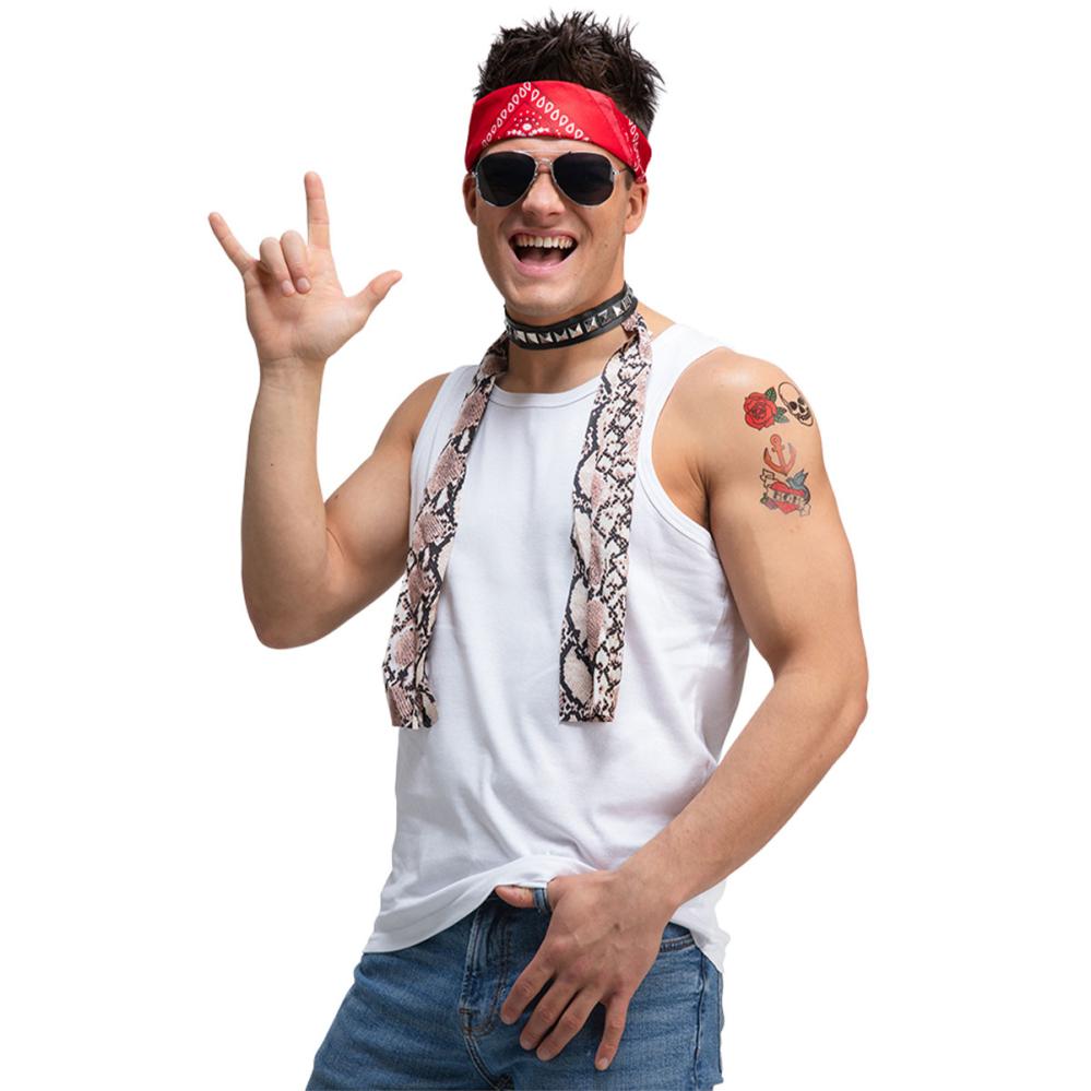 Med en elegant bandana, stilrene briller og en choker med tørklæde kompletteres enhver maskerade eller halloween som kræver følelsen af rock på en perfekt måde. Rockmaskeraden får et løft når disse tilbehør kombineres til en original og overraskende udklædning som passer alle festdeltagere.