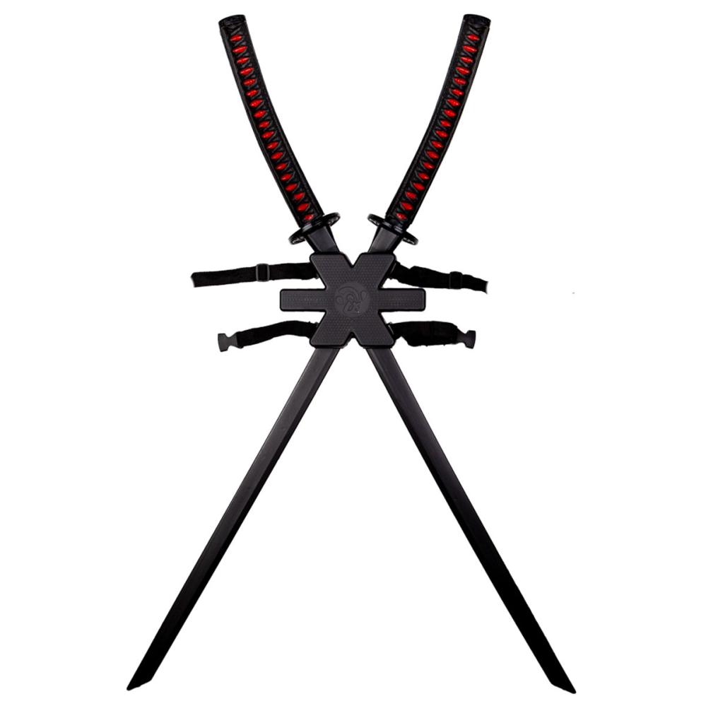 Rygsæk med Dobbelt Ninjasværd Sæt består af to sorte legetøjssværd i ninjastil som kan opbevares i de dedikerede hylstre på rygsækken. Rygsækken er udformet til at blive båret behageligt og har justerbare remme. Bemærk at den store længde på sværdene gør at sættet passer bedst til ældre børn og voksne.
