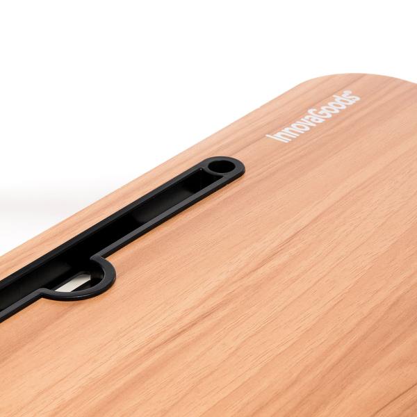 Sammenklappeligt Bærbart Bord omfatter et sammenklappeligt laptopbord af træ og metal, som er ca. 60 x 27 x 40 cm stort. Bordet er udstyret med en penholder samt en holder til tablet eller mobiltelefon med huller til ledninger.