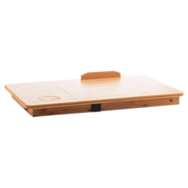 Sammenklappeligt Laptopbord inkluderer et sammenklappeligt laptopbord af bambus med justerbar højde, der skaber en ergonomisk vinkel til din computer eller tablet. Bordet har også en lille skjult opbevaringsboks på siden samt en glas-/kopholder. Laptopbordet måler ca. 53,5 x 4,5 x 34 cm, når det er foldet sammen.