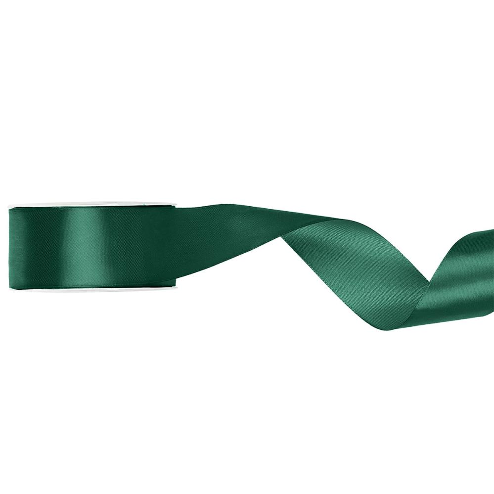 Satinbånd Flaskegrøn 25 mm omfatter et flaskegrønt satinbånd på rulle.