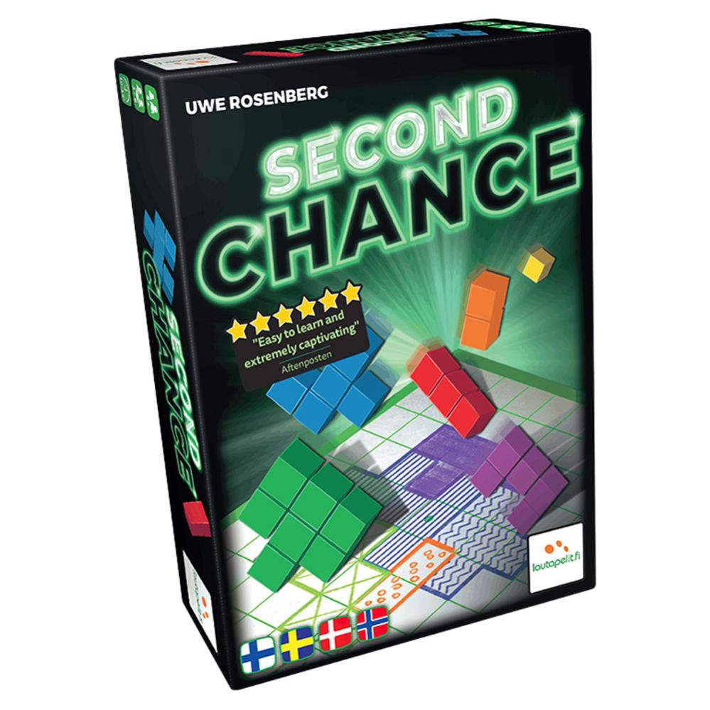 Second Chance Selskabsspil omfatter et spil, hvor hver spiller får et 9x9 gitter, som de skal udfylde så fuldstændigt som muligt ved hjælp af tetris-lignende former. Hver spiller får et kort med en startblok og markerer disse felter på deres gitter. Hver runde trækkes to puslebrik-kort, hvorefter spillerne vælger et af dem og markerer felter på deres gitter, der matcher formen på det valgte kort. Flere spillere kan vælge det samme kort. Hvis en spiller ikke kan passe nogen af de trukne former ind i deres gitter, får de en anden chance for at trække et kort fra bunken. Hvis de kan passe denne form ind i deres gitter, fortsætter de normalt til næste runde, ellers elimineres de fra spillet. Spillet slutter, når alle spillere er elimineret, puslebrik-kortene er brugt op, eller hvis en spiller har udfyldt hele deres gitter. Hvis nogen har udfyldt deres gitter, vinder de. Hvis alle spillere er elimineret, eller kortene er brugt op, vinder den spiller, der har mindst tomme felter.