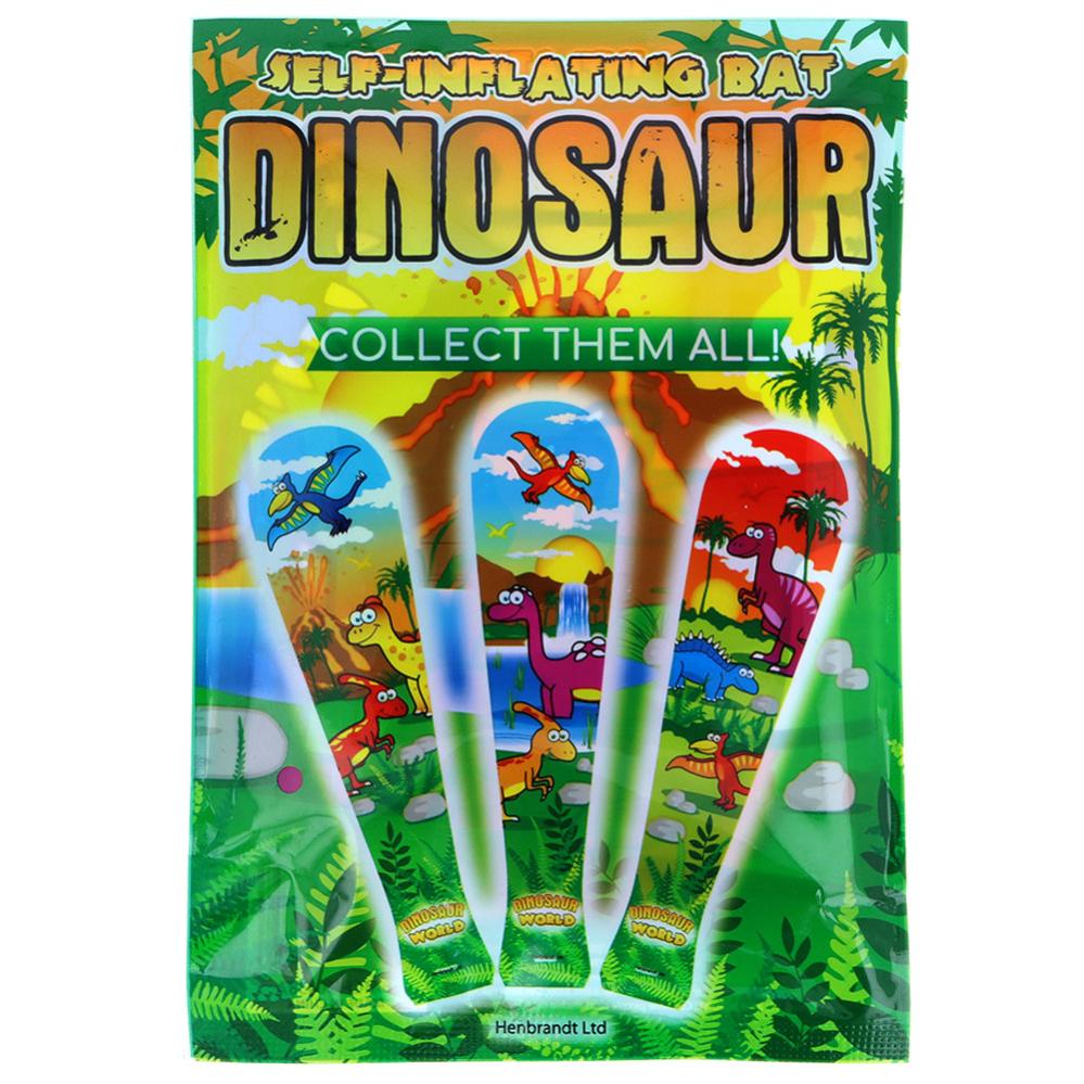 Selvoppustelige Baseballbat Dinosaurus er et baseballbat, som puster sig selv op og har et farverigt motiv med dinosaurer. Fold produktet helt ud, bryd boblen indeni, ryst det kraftigt og se det puste sig op. Det findes i tre forskellige motiver, som sælges usorterede og stykvis, så det bliver en overraskelse hvilket motiv du får.