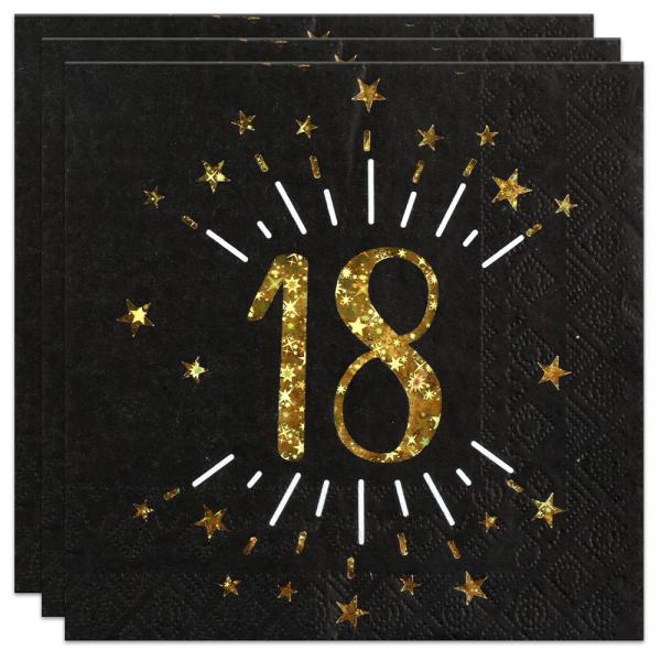 - Servietter med et guldfarvet 18-års motiv.