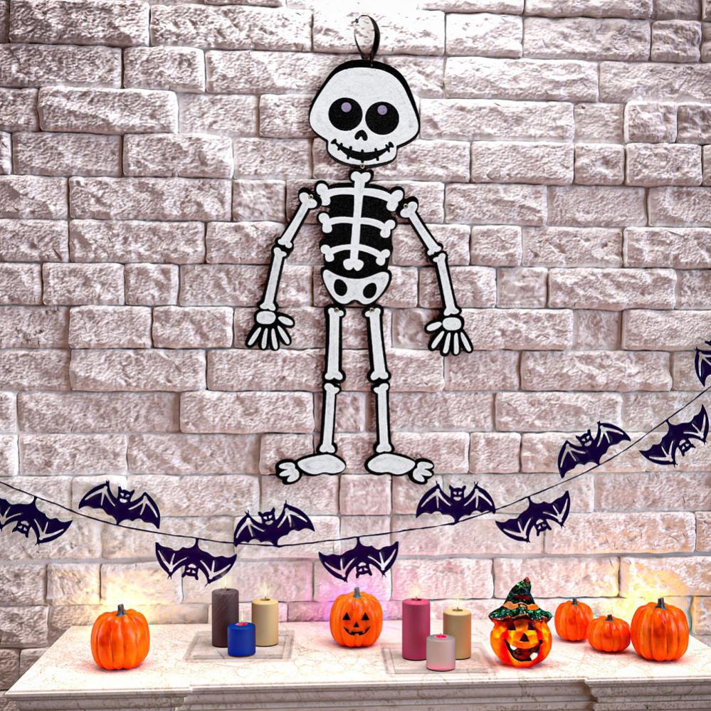 Endelig er det Halloween, og nu er det tid til at pynte op! Dekorer med denne Halloween dekoration i form af et flot skelet og få nemt en rigtig passende pynt. En præcis passende uhyggelig skelet dekoration, der passer perfekt til børnenes Halloween fest. Hæng den bare op på væggen og se, hvordan den straks gør rummet klar til Halloween!