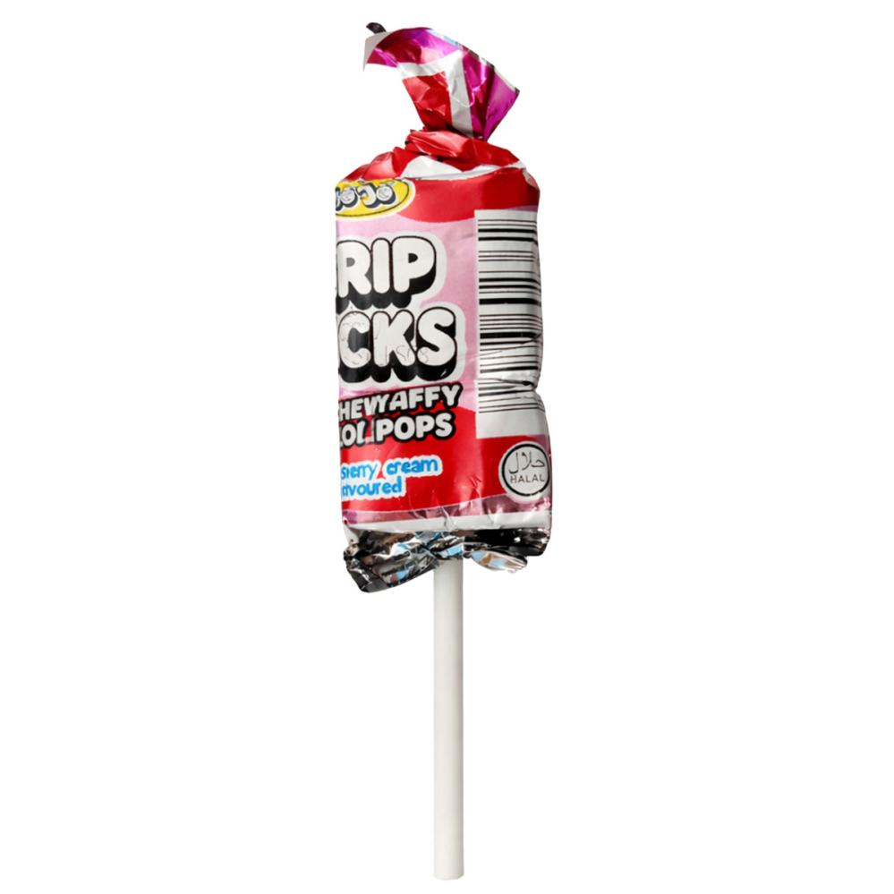 Slikkepind Jordbærcreme 8 g er en sej slikkepind med cremet jordbærsmag, der vejer 8 gram.