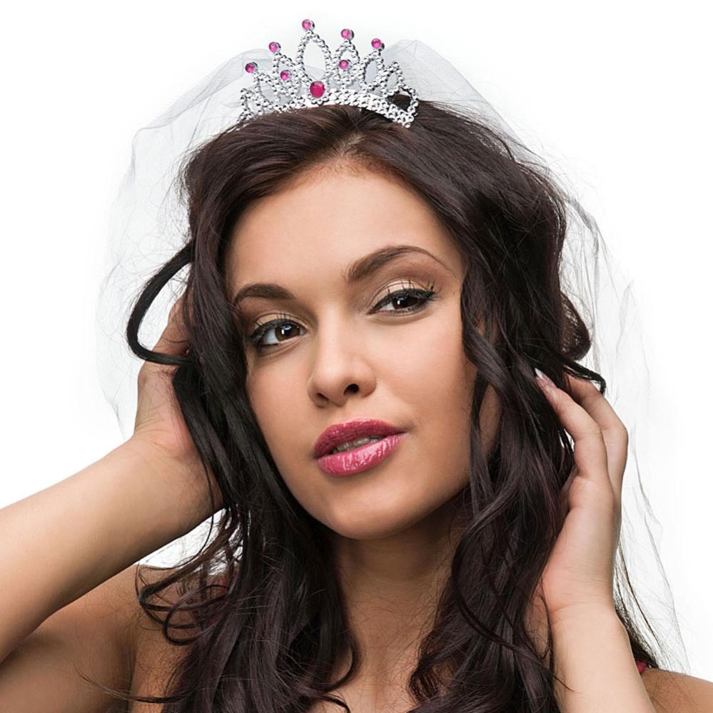 Lad den kommende brud føle sig som en rigtig prinsesse til hendes polterabend med denne elegante tiara med hængende slør. En virkelig flot polterabend tiara, der bliver det perfekte tilbehør til dig, der leder efter kongelige tilbehør til polterabend kostumet.