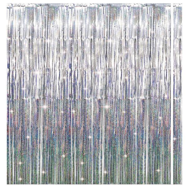 Dørforhænget i sølv giver en stilren entré til gangen eller festen. Det kan hænges op med tape eller små kroge, klippes til den rette længde og gemmes til genbrug som enkel baggrund i et fotohjørne eller som afskærmning.