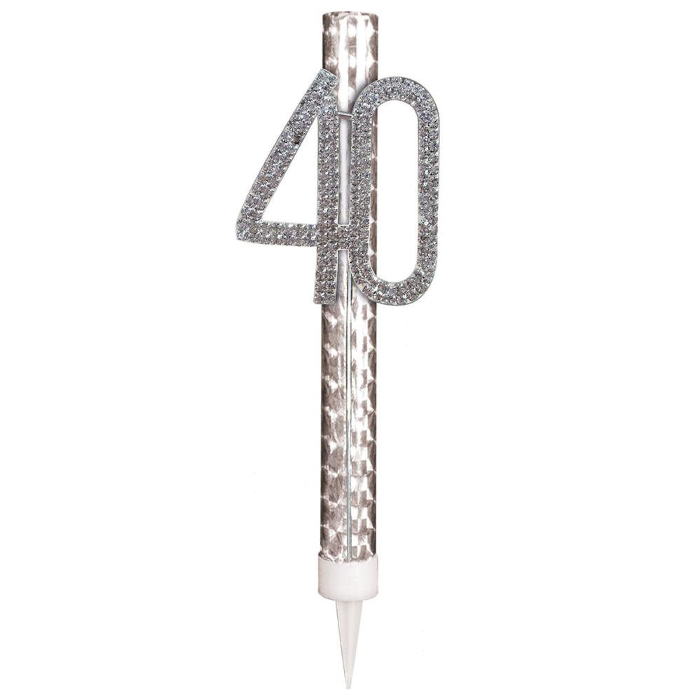 Sølv Isfontæne med Tal 40 er en isfontæne med holografisk sølvfarve og tallet 40, dekoreret med sølvfarvede strassten.