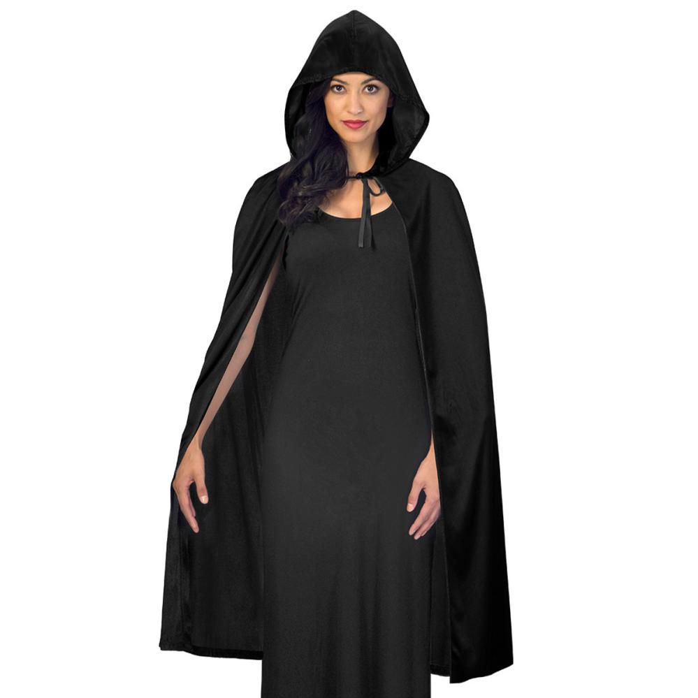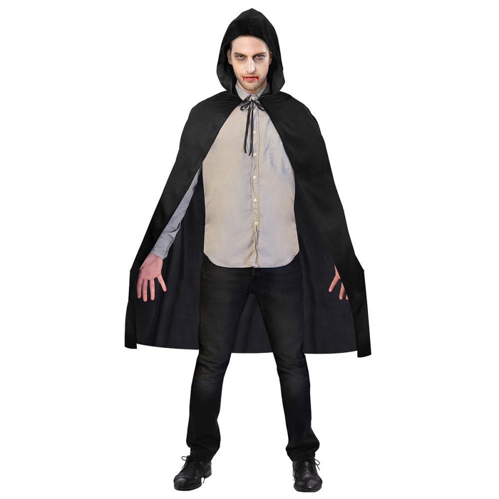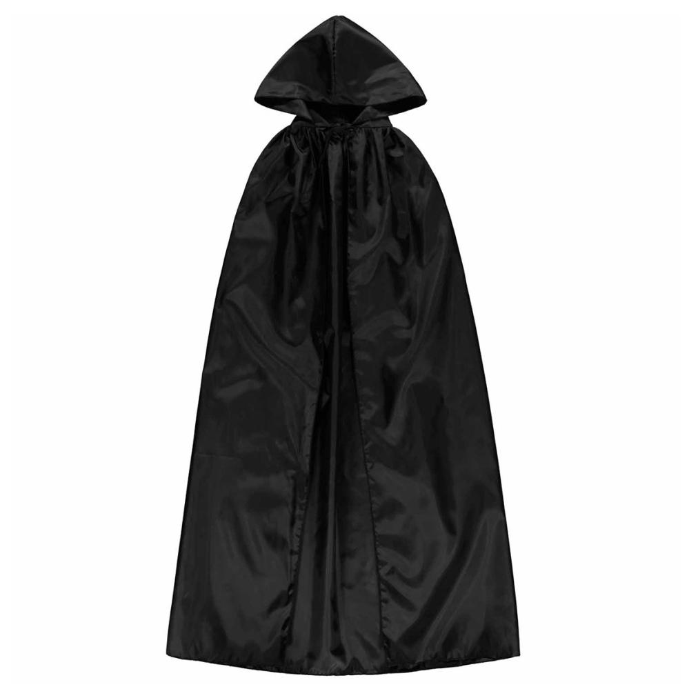 Forvandl dit look med en sort kappe med hætte, som passer perfekt som vampyrkappe eller udklædningskappe til Halloween. Denne stilrene sorte cape med hætte giver kostumet et mystisk løft.