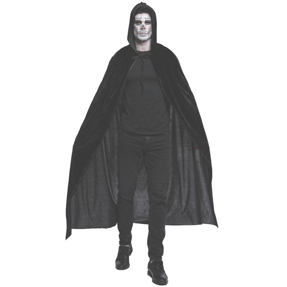 En sort kappe giver din udklædning et mystisk løft. Denne udklædningskappe med hætte bindes nemt med et bånd og passer perfekt til Halloween.