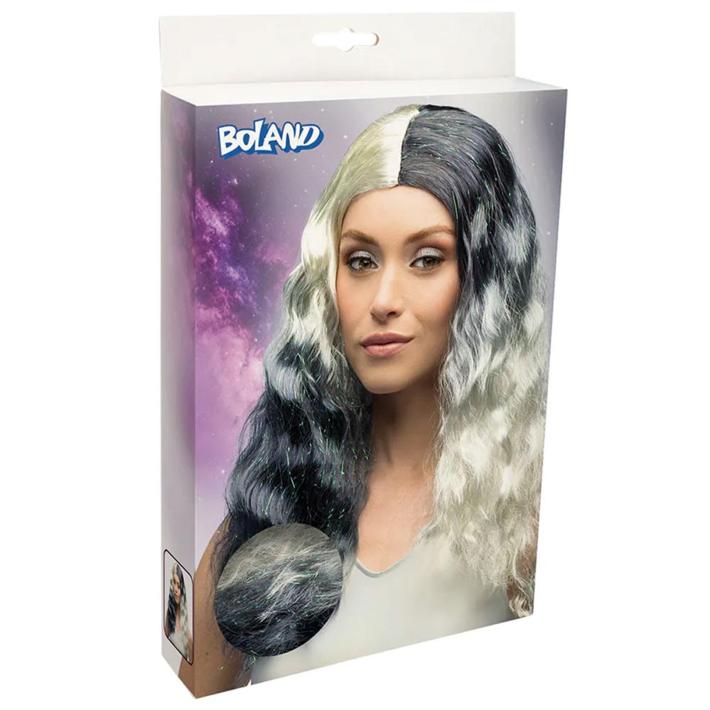 Sort og Hvid Paryk med Glitterstriber