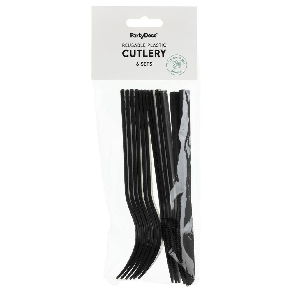 Sorte Genanvendelige Plastikbestik 12-pak