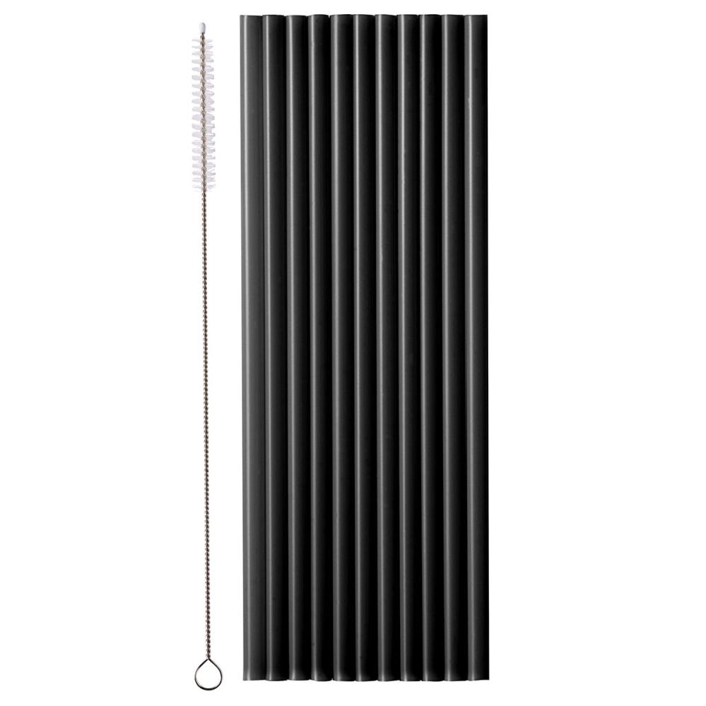 Sorte Genanvendelige Plastiksugerør 23 cm 12-pak